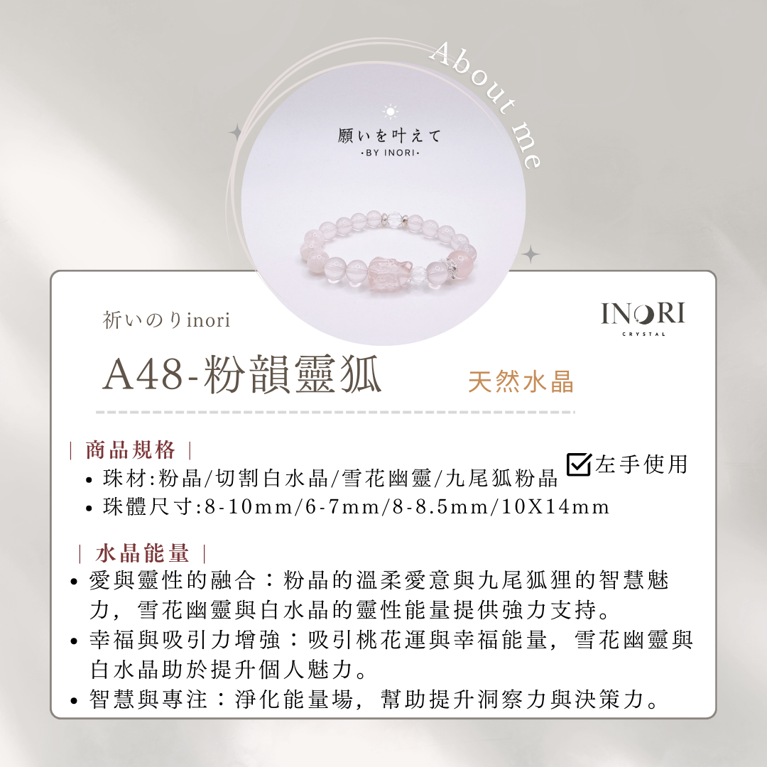 ◆ 珠材:粉晶/切割白水晶/雪花幽靈/九尾狐粉晶