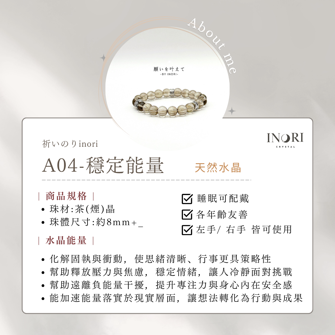 深沉的茶色光澤如大地之氣,穩固能量場與心神。