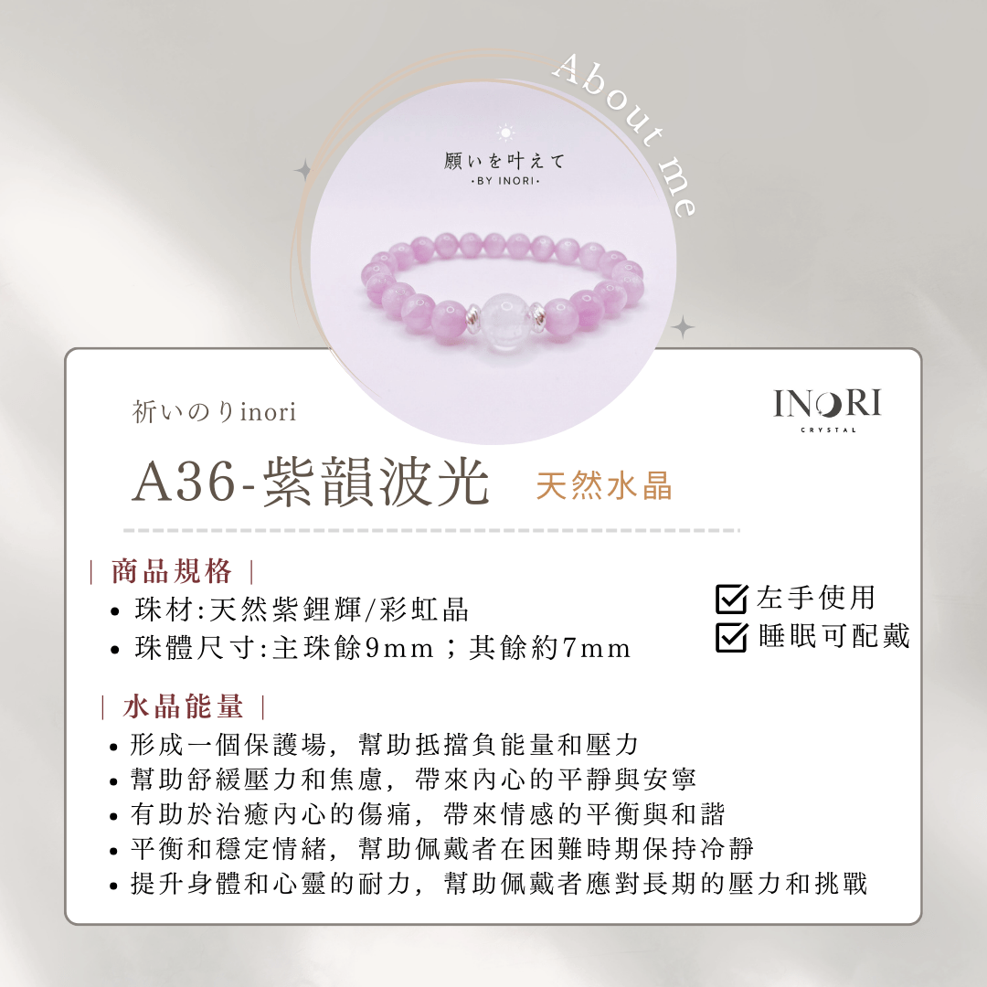 靜心與快樂:紫鋰輝帶來內心的平靜與安寧,彩虹晶帶來快樂和正能量,使佩戴者能夠更好地面對生活中的挑戰。
